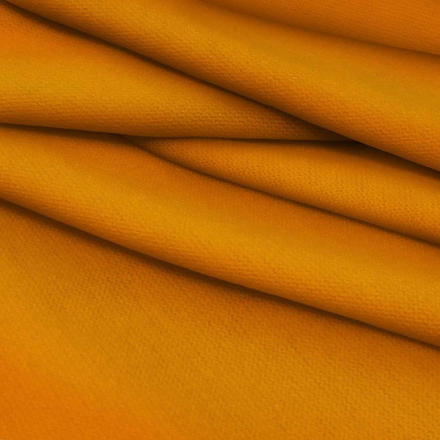 El Punto Jersey de Tacto Algodón - Atenas es una tela de punto compuesta por 81% poliéster, 15% acrílico y 4% elastano. Presenta una textura suave y elástica con un gramaje de 239 gr/m2 y un ancho de 150 cm. El color liso impreso en la tela es un naranja intenso que transmite fuerza de voluntad, con un CMYK de 1 65 99 0. Este color combina perfectamente con tonos fríos como el azul oscuro y el negro.