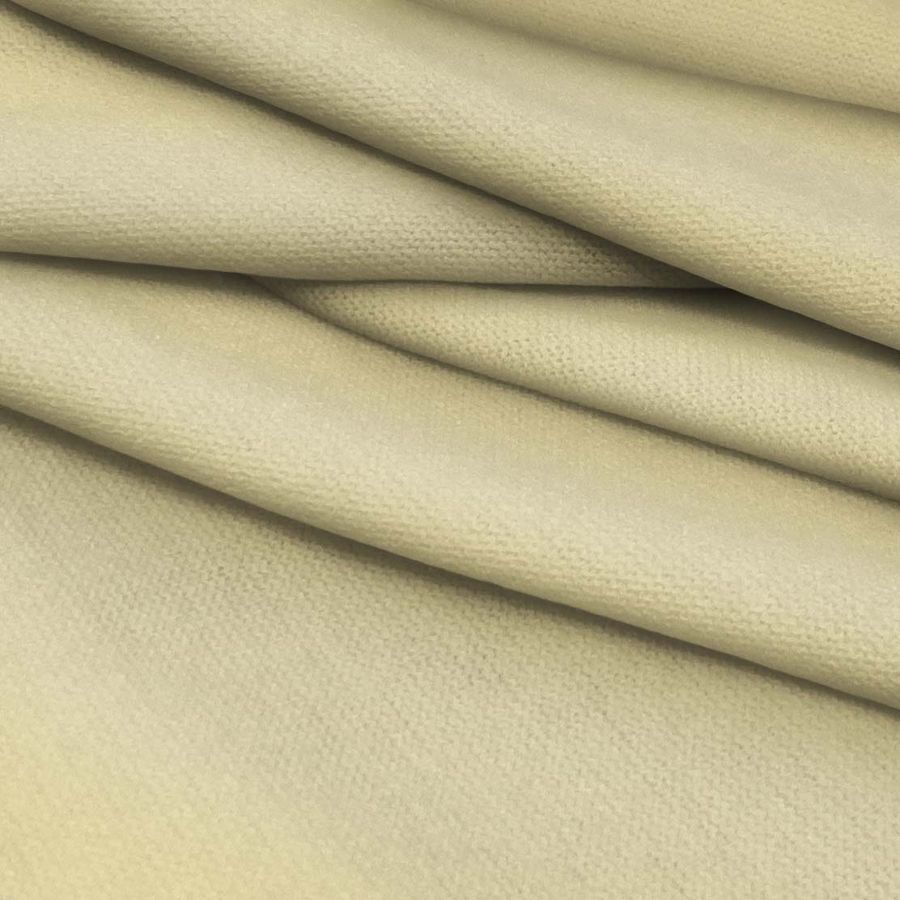 La tela base es el Punto Jersey de Tacto Algodón - Atenas, con una composición de 81% POLIÉSTER, 15% ACRÍLICO y 4% ELASTANO. El color liso impreso es Amarillo, Albumen, el cual se consigue a través de la tecnología de impresión por sublimación (POLIESTER), utilizando las tintas Cyan (4), Magenta (8), Yellow (43) y Black (0) en un CMYK de 4 8 43 0. El color secundario es suave y atractivo, transmitiendo un aire de frescura y energía a la tela. Complementa perfectamente con tonos oscuros como el negro o el gris, así como con tonos claros como el blanco y el beige. Cabe destacar que la tela está impresa con el color liso a una sola cara por impresión digital textil, por lo que no es un tejido tintado sino impreso por una sola cara.
