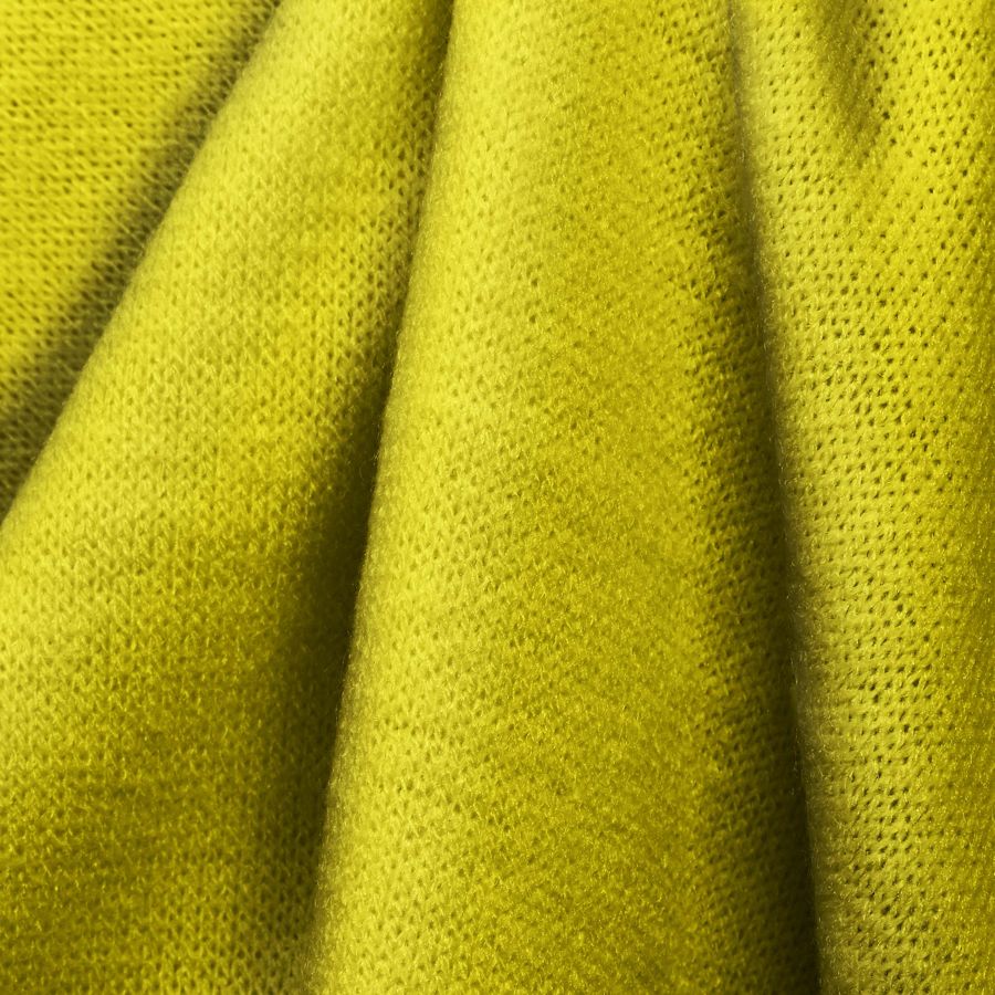 La tela base es Punto Jersey de Tacto Algodón - Atenas, de composición 81% POLIÉSTER, 15% ACRÍLICO, 4% ELASTANO, con un gramaje de 239gr/m2 y un ancho de 150cm. El color liso impreso es Amarillo Brillante con un CMYK de 5 0 90 0, que simboliza la alegría, la creatividad y la energía. Combina especialmente bien con tonos marrones, verdes y grises. La tela está impresa con el color liso a una sola cara por impresión digital textil. La textura de la tela es suave y elástica, ideal para ropa de cama, pijamas y prendas de punto. También es perfecta para confeccionar accesorios como bufandas, fulares y calcetines. La tela es apta para el invierno y el otoño/invierno 2021. Los cuidados que debemos tener en cuenta son: no blanquear, lavar a temperatura máxima de 30ºC, admite limpieza en seco salvo tricloroetileno, planchado a temperatura fría y no se puede secar con secadora. La tecnología de impresión utilizada es la sublimación de poliéster.