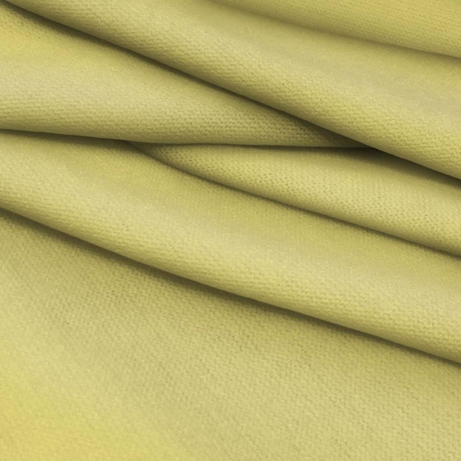La tela base Punto Jersey de Tacto Algodón - Atenas se caracteriza por su alta composición de poliéster que la hace resistente, suave y cómoda al tacto. Su color liso impreso en amarillo canario tiene un CMYK de 10 8 64 0, lo que indica una predominancia del color amarillo con un matiz verdoso. Este color secundario combina perfectamente con otros colores cálidos como el naranja, rojo y marrón, lo que la hace ideal para prendas de otoño.