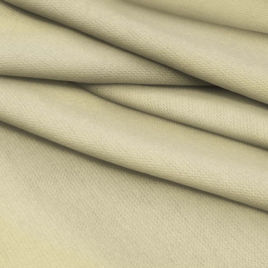 La tela base utilizada es un Punto Jersey de Tacto Algodón - Atenas, compuesta por 81% POLIÉSTER, 15% ACRÍLICO y 4% ELASTANO, con un gramaje de 239 gr/m2 y un ancho de 150 cm. El color liso impreso es un vibrante Amarillo Primavera, obtenido mediante una Tecnología de Impresión SUBLIMACIÓN (POLIESTER), que utiliza tinta Cyan, Magenta, Yellow y Black en una combinación de CMYK: 6 7 41 0.