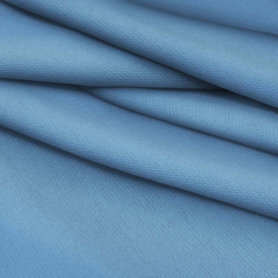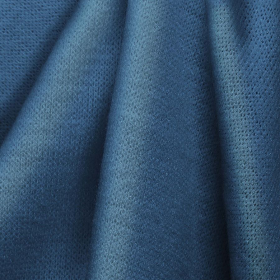 La tela base, Punto Jersey de Tacto Algodón - Atenas, es una tela de punto compuesta por 81% poliéster, 15% acrílico y 4% elastano, con un gramaje de 239 gr/m2 y un ancho de 150 cm. Su color liso, Azul Acero, está compuesto por una tinta cyan del 64%, una tinta magenta del 32%, una tinta yellow del 4% y una tinta black del 0%, lo que se traduce en un CMYK de 64 32 4 0. Este color secundario representa la sensación de frío y de metal líquido, ideal para una prenda de invierno. Combina especialmente bien con tonos neutros como el blanco y el negro, pero también con tonos pastel como el rosa pálido y el verde menta.