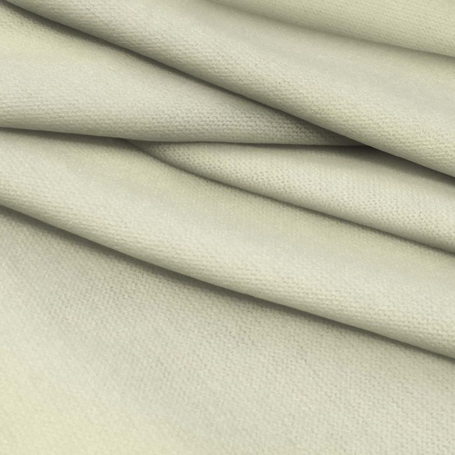 La tela base es un Punto Jersey de Tacto Algodón - Atenas, compuesta por 81% poliéster, 15% acrílico y 4% elastano, con un gramaje de 239 gr/m2 y un ancho de 150 cm. El color liso impreso es blanco/crema, con una mezcla de tintas de Cyan (2) y Yellow (25) en un CMYK de 2 0 25 0. El color secundario, con un tono crema, simboliza la calidez y la dulzura, y técnicamente aporta una sensación de suavidad al tacto y elasticidad a la tela. Combina especialmente bien con colores neutros como marrones cálidos y tonos tierra suaves.