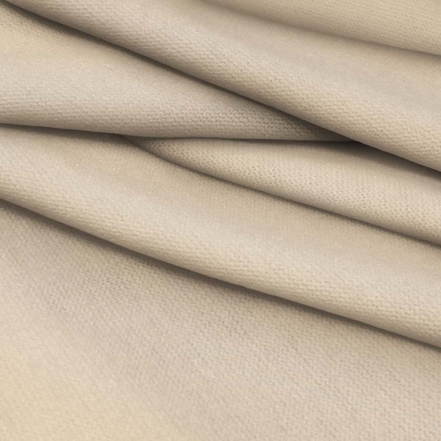La tela base es el Punto Jersey de Tacto Algodón - Atenas, compuesta por 81% de poliéster, 15% de acrílico y 4% de elastano, con un gramaje de 239 gr/m2 y ancho de 150 cm. El color del tejido liso impreso es naranja albaricoque claro con una combinación de tinta CMYK: 1 15 31 0. El color secundario es un tono cálido y agradable que evoca sensaciones positivas y creatividad. Se combina perfectamente con tonos neutros como el blanco o el beige, y contrasta de manera armónica con tonos más oscuros como el marrón chocolate o el negro. Es importante destacar que el tejido está impreso con este color liso a una sola cara por impresión digital textil, lo que significa que el color se aplica directamente sobre la superficie de la tela en una sola pasada.