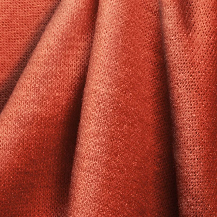 La tela base es un Punto Jersey de Tacto Algodón - Atenas, compuesta por 81% poliéster, 15% acrílico y 4% elastano, con un gramaje de 239 gr/m2 y un ancho de 150 cm. El color liso impreso en la tela es Naranja Salmón, con un CMYK de 0 76 76 0. Este color secundario simboliza la alegría, el amor y la pasión, y técnicamente es un tono cálido y vibrante que va bien con colores tierra, azules y grises. La tela está impresa con el color liso a una sola cara por impresión digital textil, lo que permite obtener una alta calidad en la impresión, con una amplia gama de colores y estampados.