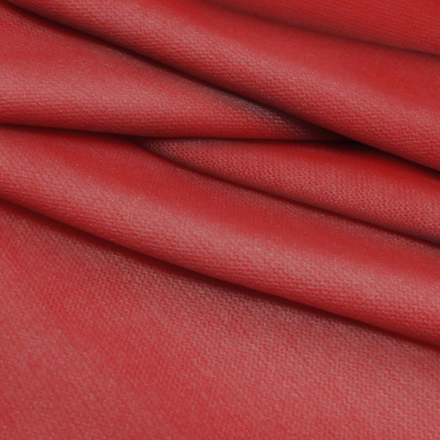 La tela base, Punto Jersey de Tacto Algodón - Atenas, es una tela de punto compuesta por 81% poliéster, 15% acrílico y 4% elastano. Con un gramaje de 239 gr/m2 y un ancho de 150 cm, se presenta como una tela suave y elástica al tacto. El color liso impreso es rojo auburn, el cual se refleja en un CMYK de 24 93 82 19. Este color secundario destaca por su intensidad y luminosidad, evocando la pasión y el vigor. Combina especialmente bien con tonos fríos como verdes azulados o tonos cálidos como los naranjas. Esta tela está impresa a una sola cara por impresión digital textil, permitiendo una alta definición en la impresión.