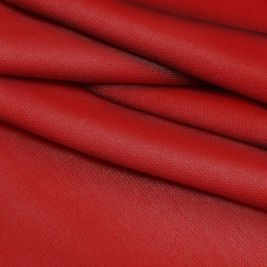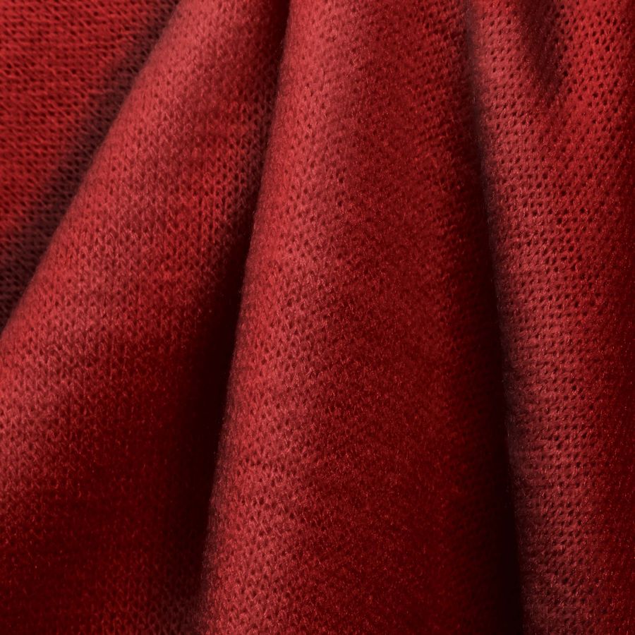 La tela base de este tejido es el Punto Jersey de Tacto Algodón - Atenas, con una composición de 81% poliéster, 15% acrílico y 4% elastano. Su gramaje de 239 gr/m2 y un ancho de 150 cm la convierten en una tela de punto con cuerpo. El color liso impreso es el rojo cardenalicio, con un CMYK de 25 100 100 26, lo que indica un alto nivel de intensidad en los colores cian, magenta y yellow, aportando un vibrante toque rojo oscuro.