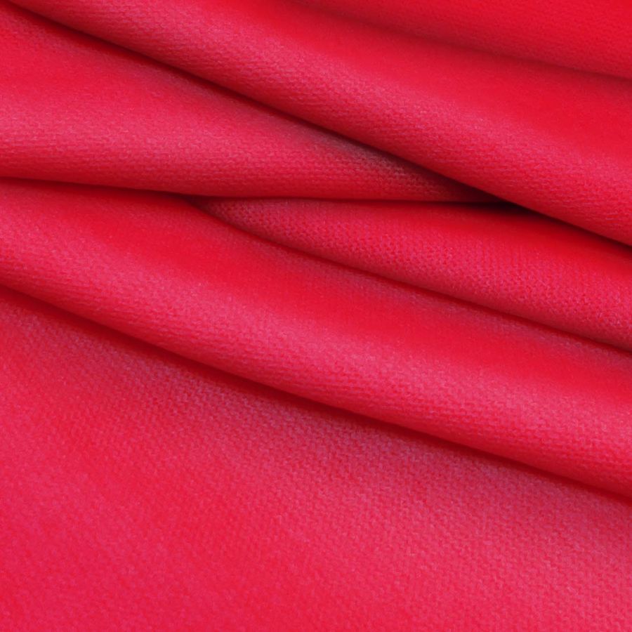 Nuestro tejido base es el Punto Jersey de Tacto Algodón - Atenas, compuesto por 81% de poliéster, 15% de acrílico y 4% de elastano. Posee un gramaje de 239 gr/m2 y un ancho de tela de 150 cm. Este tejido tiene un tacto suave y elástico gracias a sus características técnicas, lo que permite una buena adaptación al cuerpo y confort en prendas que exigen movilidad. El color liso de este tejido es el Rojo Escarlata, cuyo porcentaje de tintas es 1 de Cyan, 100 de Magenta, 76 de Yellow y 0 de Black (CMYK: 1 100 76 0). Este color es intenso, vibrante y atractivo, ideal para prendas y decoraciones en las que se busque llamar la atención. Se trata de un color que combina muy bien con tonos neutros como blanco, beige o negro, y también con colores más contrastantes como el amarillo o el verde.