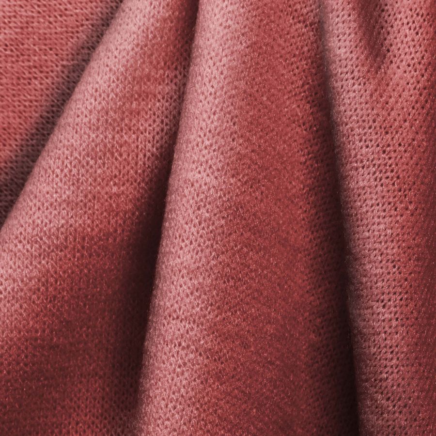 La tela base es el Punto Jersey de Tacto Algodón - Atenas, compuesta por un 81% de poliéster, 15% de acrílico y 4% de elastano, con un gramaje de 239 gr/m2 y un ancho de 150 cm. Su color liso impreso es Rojo Fuzzy Wuzzy, con una tinta Cyan de 16, Magenta de 69, Yellow de 51 y Black de 5, que combinan sutilmente para generar un tono intenso y vibrante. Este color secundario se caracteriza por ser un rojo oscuro y cálido, y se combina perfectamente con otros colores como el blanco, gris e incluso el rosa.