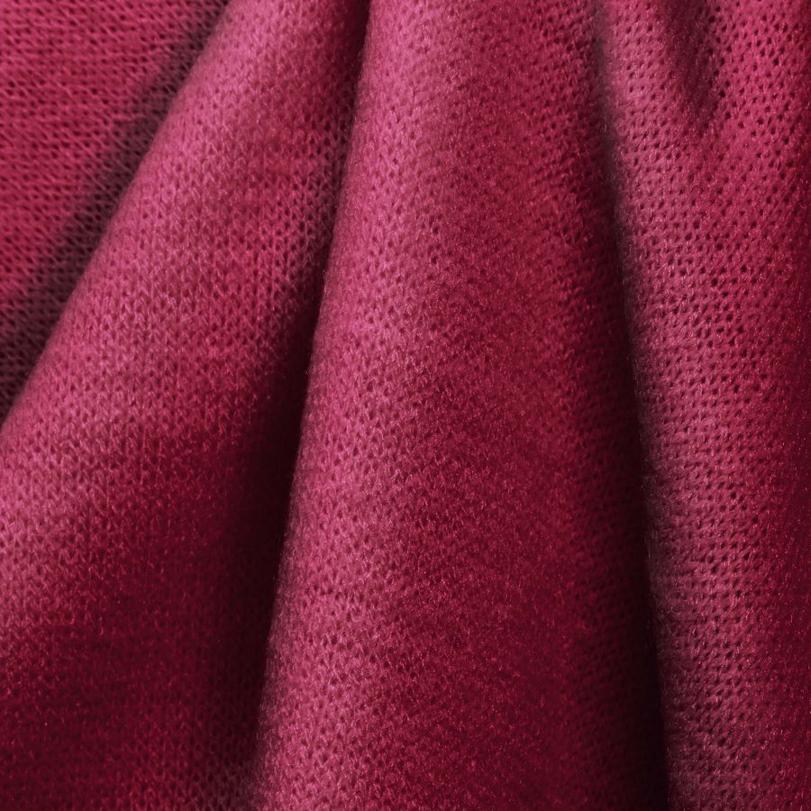 La tela base es el Punto Jersey de Tacto Algodón - Atenas, compuesta por 81% POLIÉSTER, 15% ACRÍLICO y 4% ELASTANO, con un gramaje de 239 gr/m2 y un ancho de 150 cm. Su color es rojo granate, cuyo CMYK es 23 98 52 17. Este color secundario simboliza la pasión y la fuerza, caracterizado por ser intenso y oscuro. Se combina principalmente con tonos oscuros, proporcionando un contraste armonioso. La tela está impresa a una sola cara por SUBLIMACIÓN (POLIESTER), utilizando tinta textil que se fija al tejido mediante el calor.