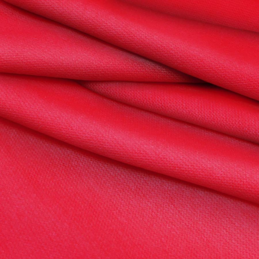La tela base es el Punto Jersey de Tacto Algodón - Atenas, compuesta por 81% poliéster, 15% acrílico y 4% elastano, con un gramaje de 239 gr/m2 y ancho de 150 cm. El color impreso es Rojo, Manzana Caramelo, con un CMYK de 2 100 81 0. Este color secundario se describe como un tono intenso y fresco, que combina bien con colores neutros como el blanco, gris o negro, así como con tonos pasteles o tierra. Cabe destacar que la tela está impresa con el color liso a una sola cara por impresión digital textil, lo que garantiza su durabilidad y resistencia al lavado.