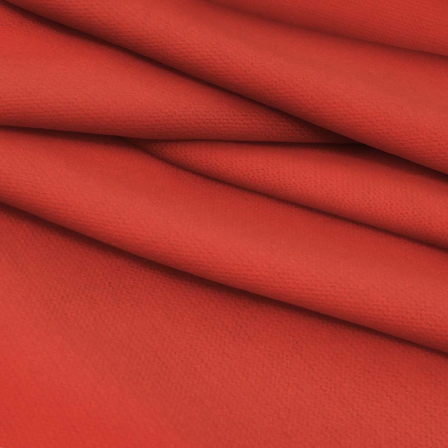 La tela base, Punto Jersey de Tacto Algodón - Atenas, es una tela de punto compuesta por 81% poliéster, 15% acrílico, 4% elastano, con un gramaje de 239 gr/m2 y una anchura de 150 cm. El color liso impreso en esta tela es rojo CG, con una composición de tintas de 5% cian, 87% magenta y 82% amarillo, y 0% negro, lo que resulta en un color rojo intenso y vibrante.