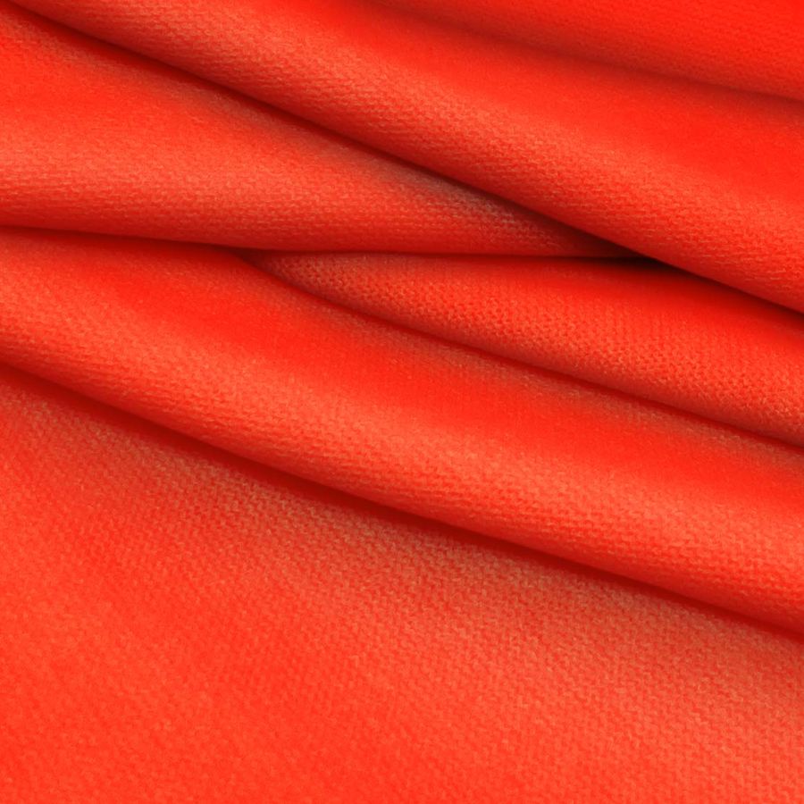 La tela base es el Punto Jersey de Tacto Algodón - Atenas, con una composición de 81% poliéster, 15% acrílico y 4% elastano; un gramaje de 239 gr/m2 y un ancho de 150 cm. En cuanto a su color liso impreso, es un rojo Ferrari que se consigue mediante una combinación de cian al 0%, magenta al 89%, y amarillo al 93% con un porcentaje de negro del 0%. El resultado es un color vivo y brillante que se complementa muy bien con tonos neutros como el blanco, el gris y el negro.