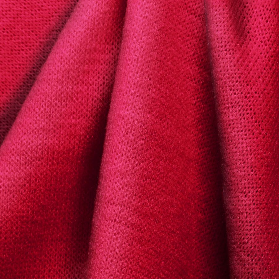La tela base, Punto Jersey de Tacto Algodón - Atenas, es una tela de punto compuesta por 81% poliéster, 15% acrílico y 4% elastano, con un gramaje de 239 gr/m2 y un ancho de 150 cm. El color liso impreso es rojo munsell, con una combinación de tinta cyan de 0, magenta de 97, yellow de 66 y black de 0, que representa un tono intenso y vibrante.