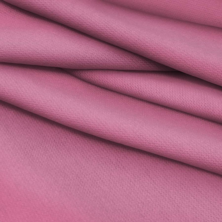 La tela base es el Punto Jersey de Tacto Algodón - Atenas, de composición 81% POLIÉSTER, 15% ACRÍLICO y 4% ELASTANO. Su peso es de 239 gr/m2 y tiene un ancho de 150 cm. El color liso impreso es una combinación de rojo y violeta pálido con un CMYK de 11 68 20 0. Este color secundario transmite una sensación de sofisticación, elegancia y misterio. Combina especialmente bien con tonos blancos, negros y grises.