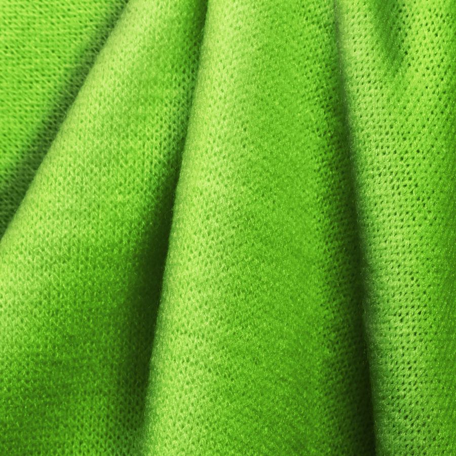 La tela base es el Punto Jersey de Tacto Algodón - Atenas, con una composición de 81% POLIÉSTER, 15% ACRÍLICO y 4% ELASTANO. Tiene un gramaje de 239 gr/m2 y un ancho de 150 cm. El color liso impreso es un vibrante Verde Lima, con una combinación de cian del 46%, amarillo del 100% y magenta del 0%, reflejado en su CMYK de 46 0 100 0. Este color evoca la frescura de la naturaleza y se complementa bien con otros tonos neutros o pasteles como el blanco o el rosa pálido.