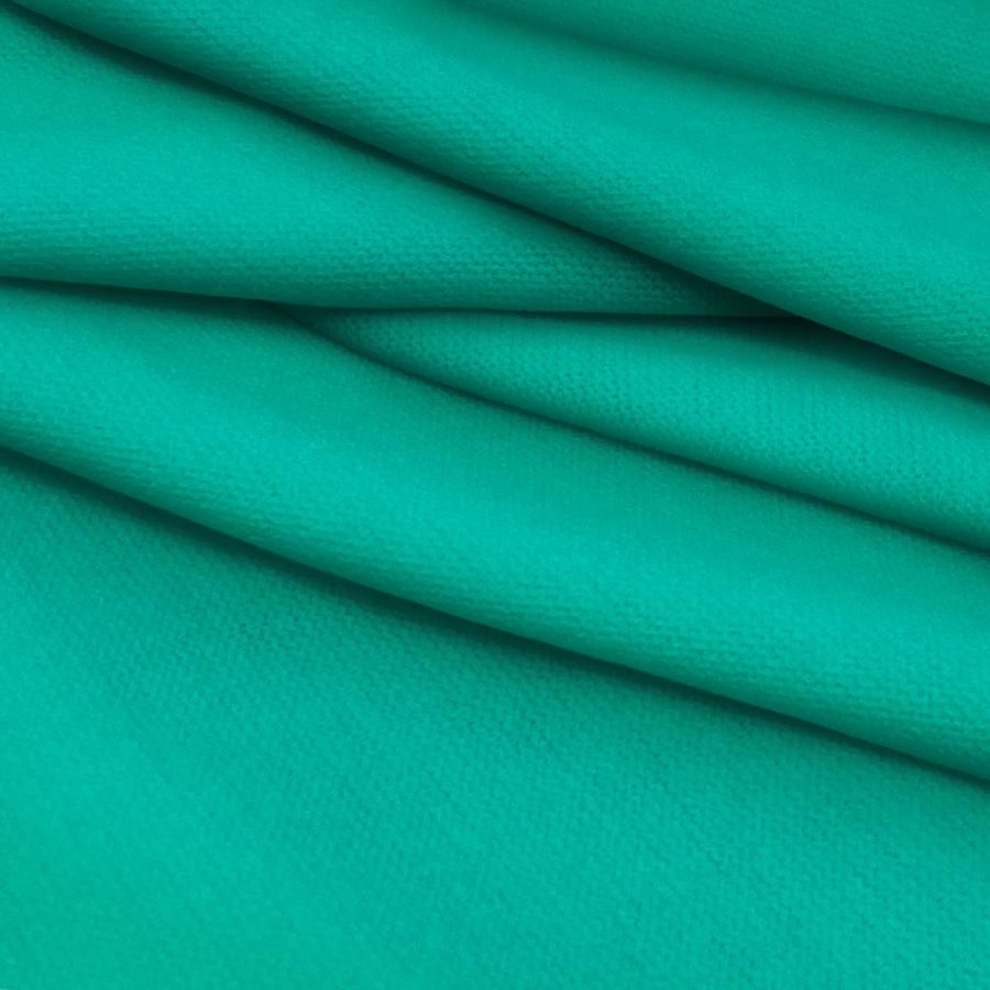La tela base de este tejido es el Punto Jersey de Tacto Algodón - Atenas, compuesta por un 81% de poliéster, un 15% de acrílico y un 4% de elastano, con un gramaje de 239 gr/m2 y un ancho de 150 cm. El color liso impreso es un Verde Mar Profundo, cuyo CMYK es 74 0 52 0, lo que lo hace un tono oscuro, profundo y elegante. Este color es perfecto para combinarse con otros colores tierra, tonos ocres y dorados, rojos oscuros y colores neutros suaves como el gris o el blanco.