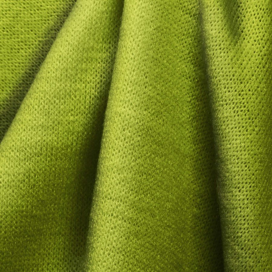 Entre las aplicaciones y usos de esta tela base destacan la lencería, los pijamas, los jerseys, los tops, los vestidos, los cardigans, las mantas, los accesorios como calcetines, fulares y bufandas, y prendas de punto para niños. Además, es adecuada para la fabricación de servilletas de comedor. El color verde ácido es ideal para prendas casuales y modernas, y puede ser utilizado tanto en ropa de mujer como de hombre.