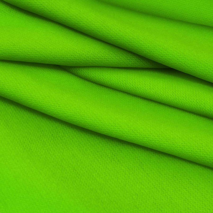 La tela base de este tejido es el Punto Jersey de Tacto Algodón - Atenas, compuesta por 81% de poliéster, 15% de acrílico y 4% de elastano, con un gramaje de 239 gr/m2 y una anchura de 150 cm. Su color liso impreso es un verde intenso, como un verde césped, con los siguientes valores de CMYK: 61 0 100 0; es decir, con un alto porcentaje de tinta de Cyano y Amarillo. Este color simboliza la frescura de la naturaleza y transmite una sensación de armonía y equilibrio. Combinado con otros colores, el verde funciona muy bien con tonos neutros como el blanco, negro y gris, así como con tonalidades pastel, marrones y colores tierra.