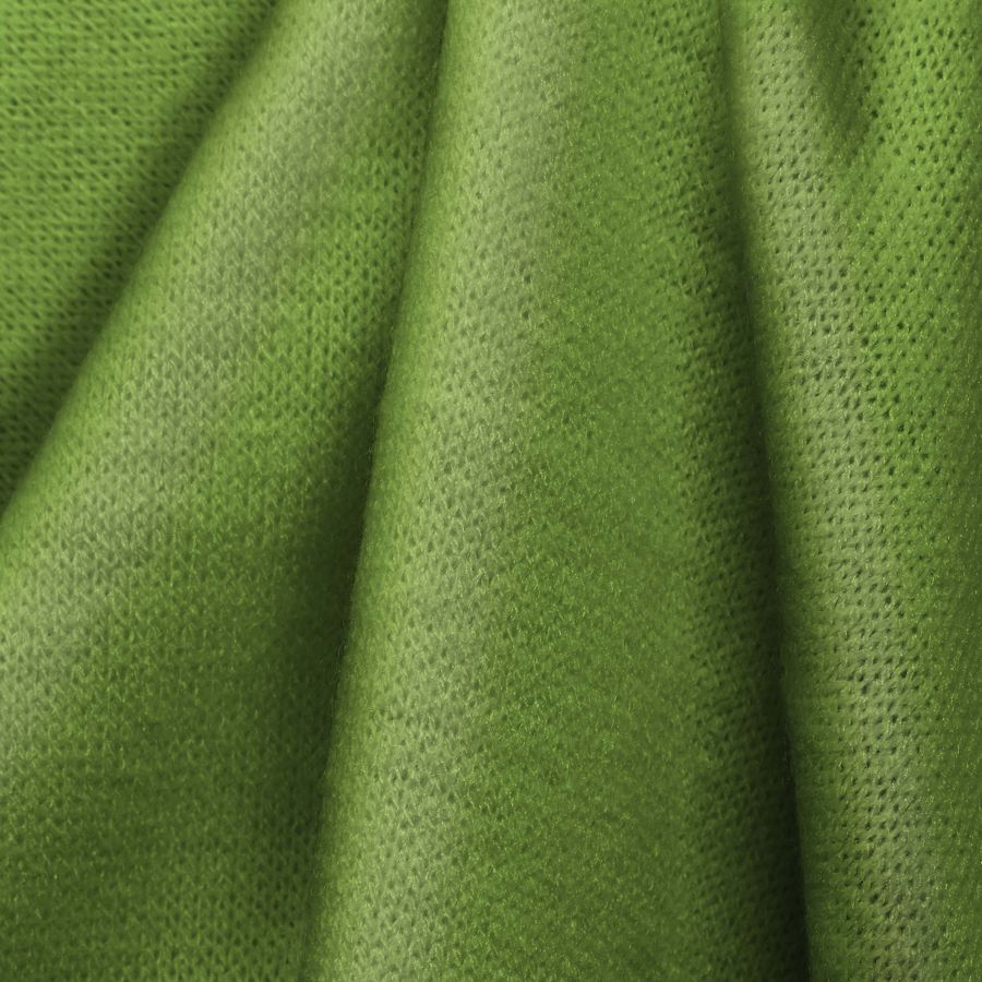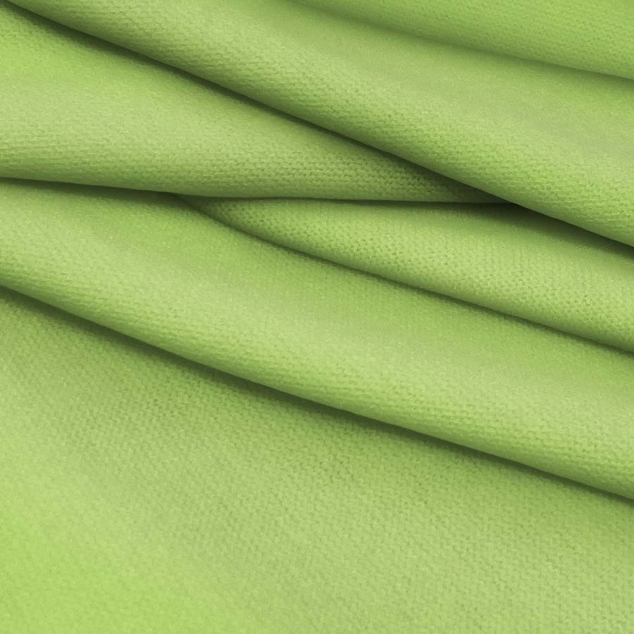 La tela base es el Punto Jersey de Tacto Algodón - Atenas, compuesta por 81% poliéster, 15% acrílico y 4% elastano. El color liso impreso es Verde Nilo, con un CMYK de 36 0 70 0, que se combina magníficamente con tonos pastel, el beige y los tonos de madera. El tejido está impreso con el color liso a una sola cara por impresión digital textil, por lo que no es un tejido tintado sino impreso por una sola cara.