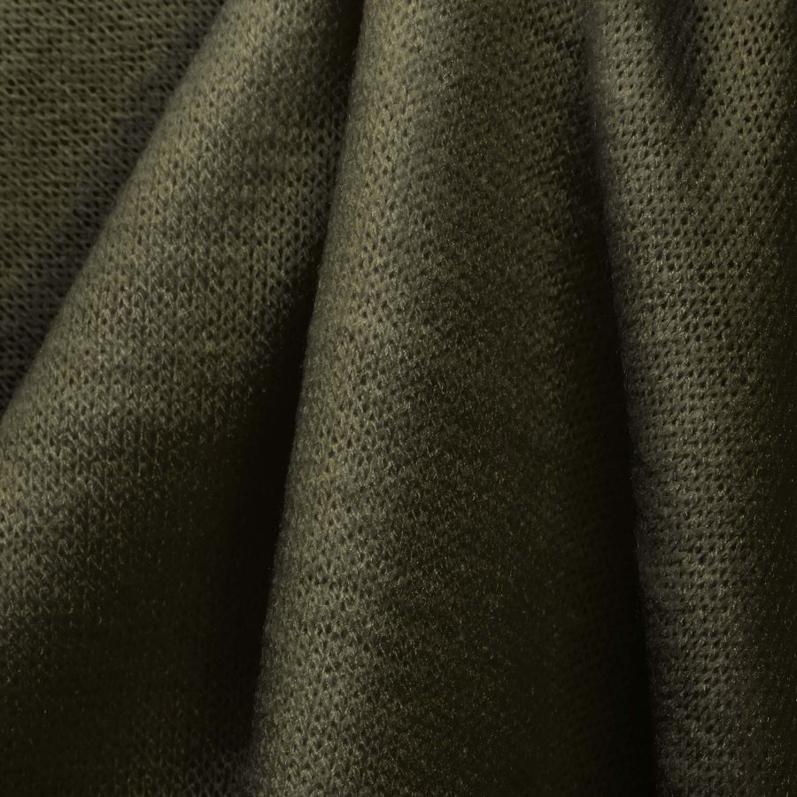 La tela base es el Punto Jersey de Tacto Algodón - Atenas, compuesta por 81% de poliéster, 15% de acrílico y 4% de elastano, con un gramaje de 239 gr/m2 y una anchura de 150 cm. El color liso impreso es Verde Pardo con un CMYK de 63 56 87 66. El color Verde Pardo es una tonalidad cromática que representa la naturaleza y la tierra, evocando fortaleza y resistencia. Esta tonalidad se asocia al verde oliva y al marrón, colores que transmiten una sensación de calidez. Combinado con colores claros o neutros logra una apariencia tranquila y relajada, mientras que combinado con colores oscuros representa confianza y seriedad.