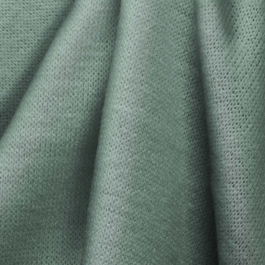 La tela base es el Punto Jersey de Tacto Algodón - Atenas, compuesta en un 81% de poliéster, 15% de acrílico y 4% de elastano. Su gramaje es de 239 gr/m2 y su ancho de 150 cm. El color liso impreso en ella es un verde pipermint con un CMYK de 27 0 20 0. Este color posee una simbología muy especial ya que combina la frescura de la vegetación con la suavidad de la menta, lo que lo convierte en un color asociado con la calma y la harmonía. Además, el verde pipermint combina particularmente bien con tonos cercanos en la misma gama como el menta, el amarillo suave y los blancos rotos.