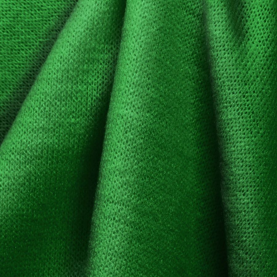 La tela base, Punto Jersey de Tacto Algodón - Atenas, es una tela de punto compuesta por 81% poliéster, 15% acrílico y 4% elastano, con un gramaje de 239 gr/m2 y un ancho de 150cm. El color liso impreso es un verde rana, con CMYK de 84 18 100 5, y está impreso a una sola cara por impresión digital textil. Este color se presenta de forma suave y elástica al tacto, lo que le da un aspecto fresco y juvenil.