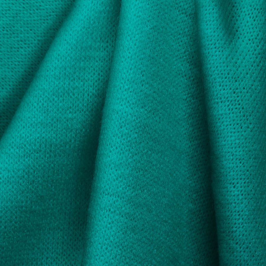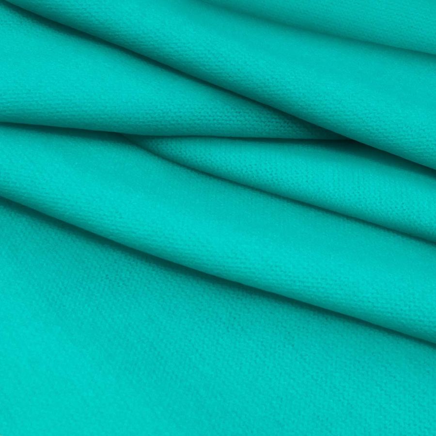 La tela base, Punto Jersey de Tacto Algodón - Atenas, es un tejido de punto compuesto por 81% de poliéster, 15% de acrílico y 4% de elastano con un gramaje de 239 gr/m2 y un ancho de 150 cm. El color liso impreso es de un hermoso verde esmeralda con un CMYK de 65 0 31 0. Este color es equilibrado entre el cian y el amarillo, con un toque de magenta que lo hace fresco y vivo. Este verde esmeralda es un color que simboliza la naturaleza, la riqueza, la paz y la armonía. Este color combina muy bien con otros tonos de verdes, azules y grises.