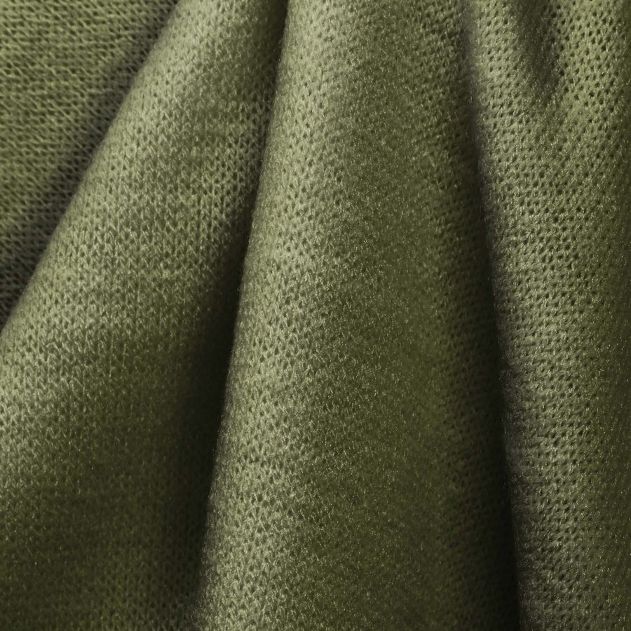 La tela base, Punto Jersey de Tacto Algodón - Atenas, presenta un tono verde intenso y vibrante que recuerda al color de la piel de un cocodrilo. Este color liso impreso tiene una composición de CMYK 54 37 75 25, con una intensidad de tinta que aporta una gran resistencia al lavado. El color verde cocodrilo es un tono versátil que combina muy bien con otros tonos marrones, tierras, beige, blanco y negro.