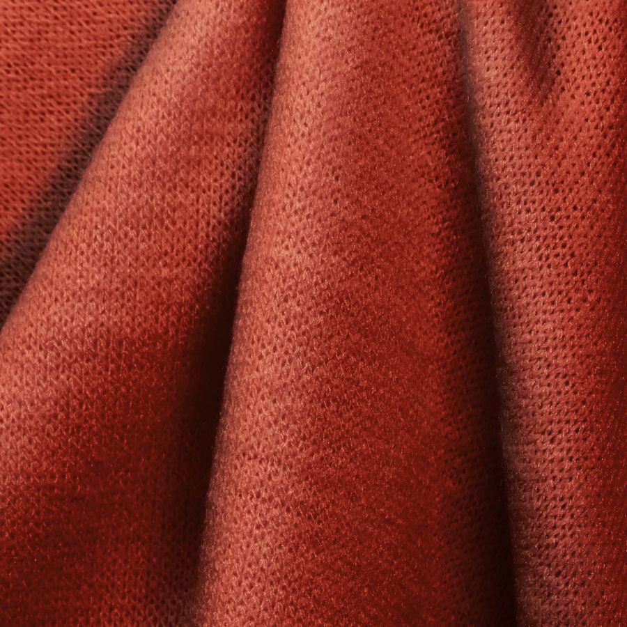 La tela base, un Punto Jersey de Tacto Algodón - Atenas, tiene una composición de 81% poliéster, 15% acrílico y 4% elastano. De color liso, está impreso en tono rojo pastel con una tinta CMYK de 17 87 93 7. Este tono es suave y acogedor, con un matiz de calidez que lo hace perfecto para la temporada de otoño e invierno. Combina bien con tonos cálidos como marrones trigueños o morados apagados. Se trata de un tejido impreso con una sola cara por impresión digital textil.