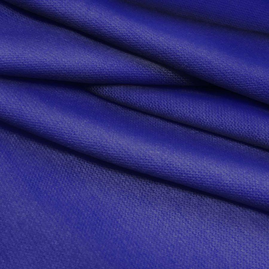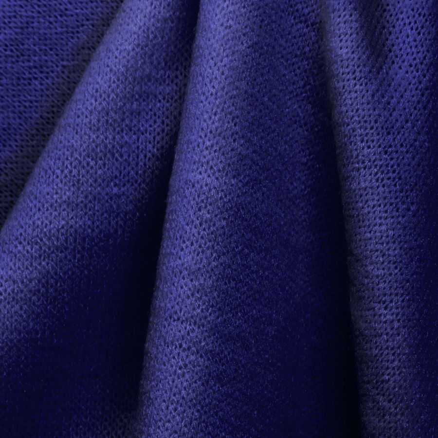 La tela base es el Punto Jersey de Tacto Algodón - Atenas, compuesta por 81% de poliéster, 15% de acrílico y 4% de elastano, con un gramaje de 239 gr/m2 y un ancho de 150 cm. El color liso impreso es un Azul medianoche, representado por un CMYK de 100 95 29 14. Este color se caracteriza por ser profundo, intenso e intrigante, transmitiendo una sensación de misterio. Combina especialmente bien con tonos dorados y plata, aportando un toque de elegancia y sofisticación.