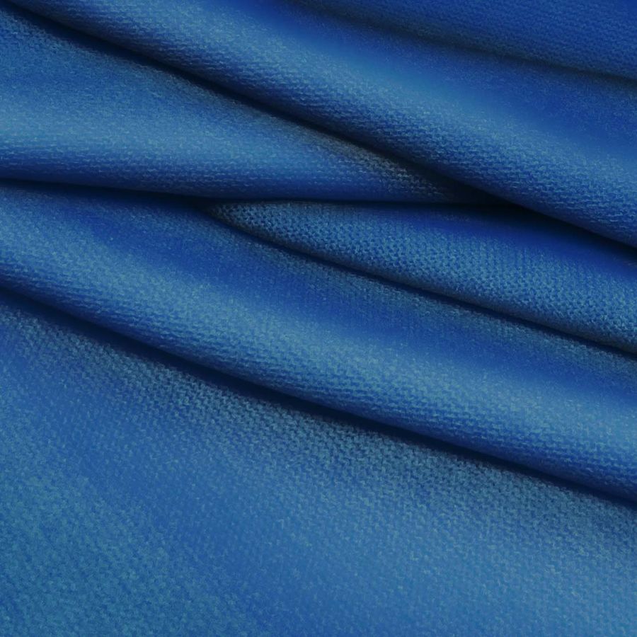 La tela base del tejido es el Punto Jersey de Tacto Algodón - Atenas, compuesto en un 81% de poliéster, un 15% de acrílico y un 4% de elastano. Su gramaje es de 239 gr/m2 y su ancho de 150 cm. El color liso impreso es Azul Ultramar, con los siguientes valores CMYK: 99 71 26 11.
