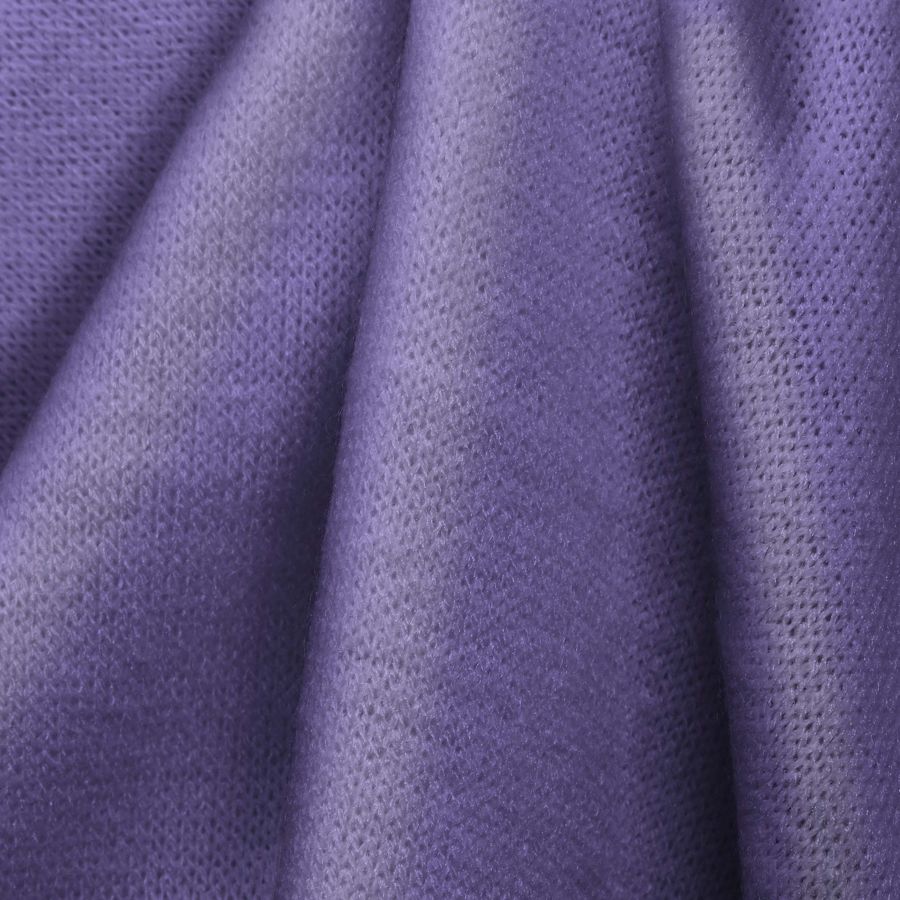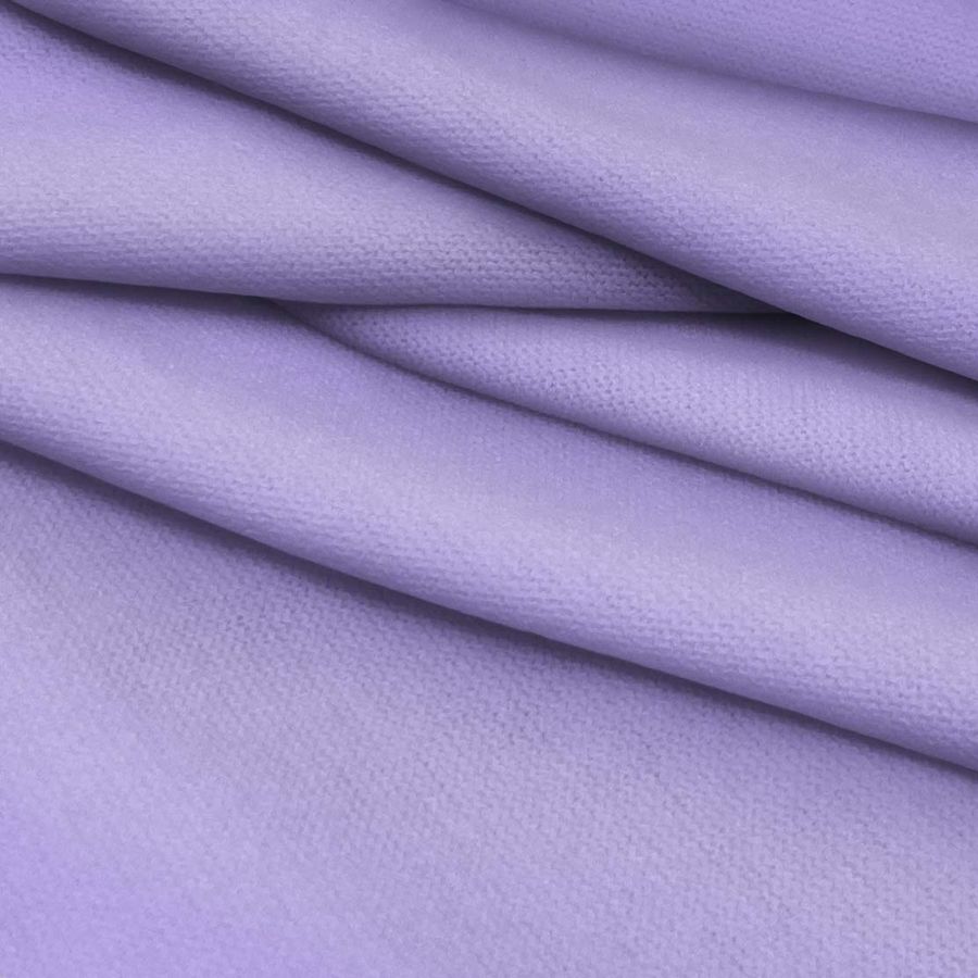 La tela base es el Punto Jersey de Tacto Algodón - Atenas, con una composición de 81% poliéster, 15% acrílico y 4% elastano, un gramaje de 239 gr/m2 y un ancho de 150 cm. El color liso impreso es Azul Lavanda, que se consigue con una combinación de tinta cyan del 35% y tinta magenta del 37%, obteniendo un CMYK de 35 37 0 0. Este color se caracteriza por ser elegante y sereno, transmitiendo tranquilidad y calma. Combina perfectamente con tonos pasteles, grises y blancos.