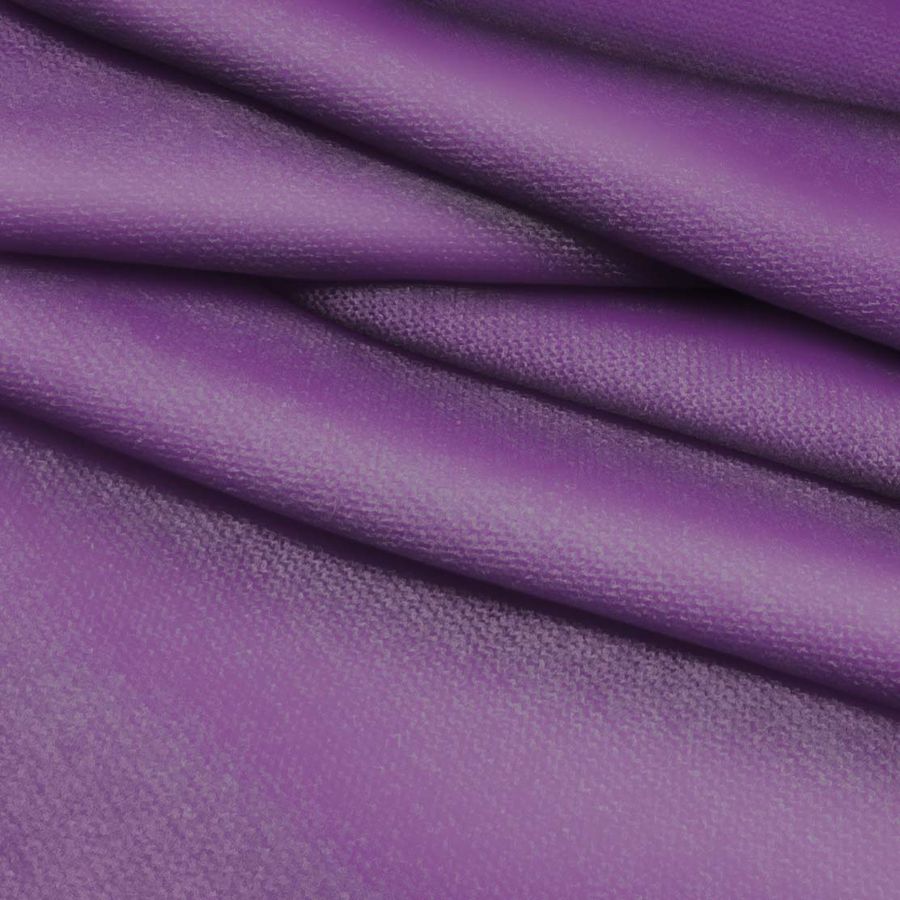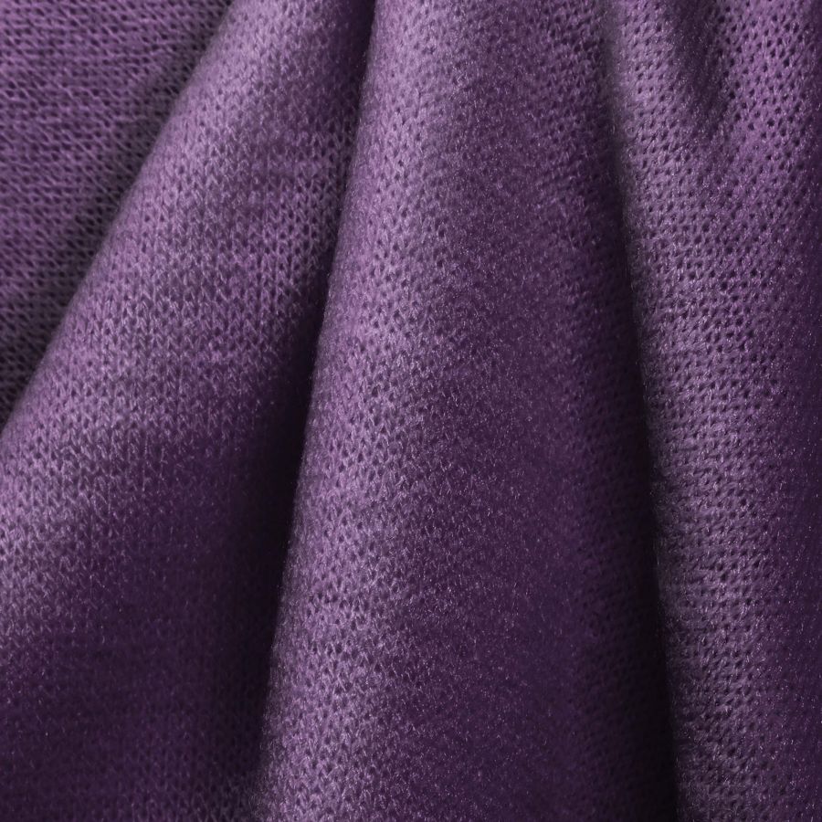 La tela base, Punto Jersey de Tacto Algodón - Atenas, es una tela de punto con una composición de 81% poliéster, 15% acrílico y 4% elastano, con un peso de 239 gr/m2 y un ancho de 150 cm. La tela tiene un suave y elástico tacto y se imprime con un color liso que combina el azul y el lila, con una tinta cyan del 65%, magenta del 78%, amarilla del 27% y negro del 12%, es decir, un CMYK de 65 78 27 12. El color impreso destaca por su tonalidad atractiva y relajante, que combina perfectamente con tonos blancos, grises y negros, así como con otros tonos pastel como el rosa y el verde.