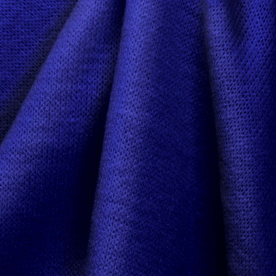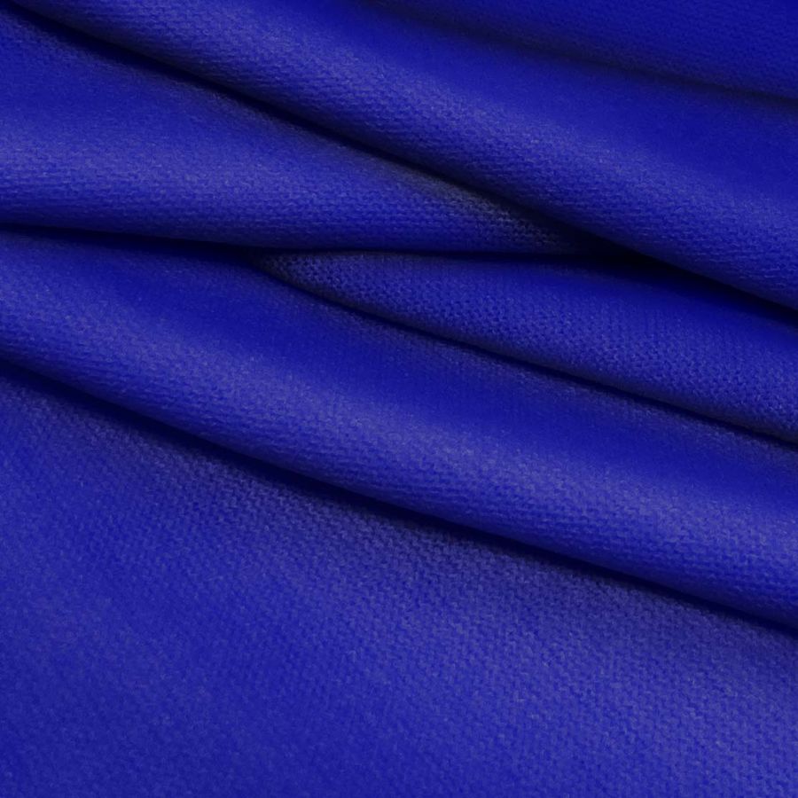 La tela base es el Punto Jersey de Tacto Algodón - Atenas, con un gramaje de 239 gr/m2 y una composición de 81% poliéster, 15% acrílico y 4% elastano. El color liso impreso de esta tela es en tonos Azul y Azul Marino, con un CMYK de 100 93 26 14. Este color secundario evoca la frescura y tranquilidad del mar, y combina a la perfección con los colores blancos y grises claros, así como con colores fríos como el verde menta y el rosa pálido.