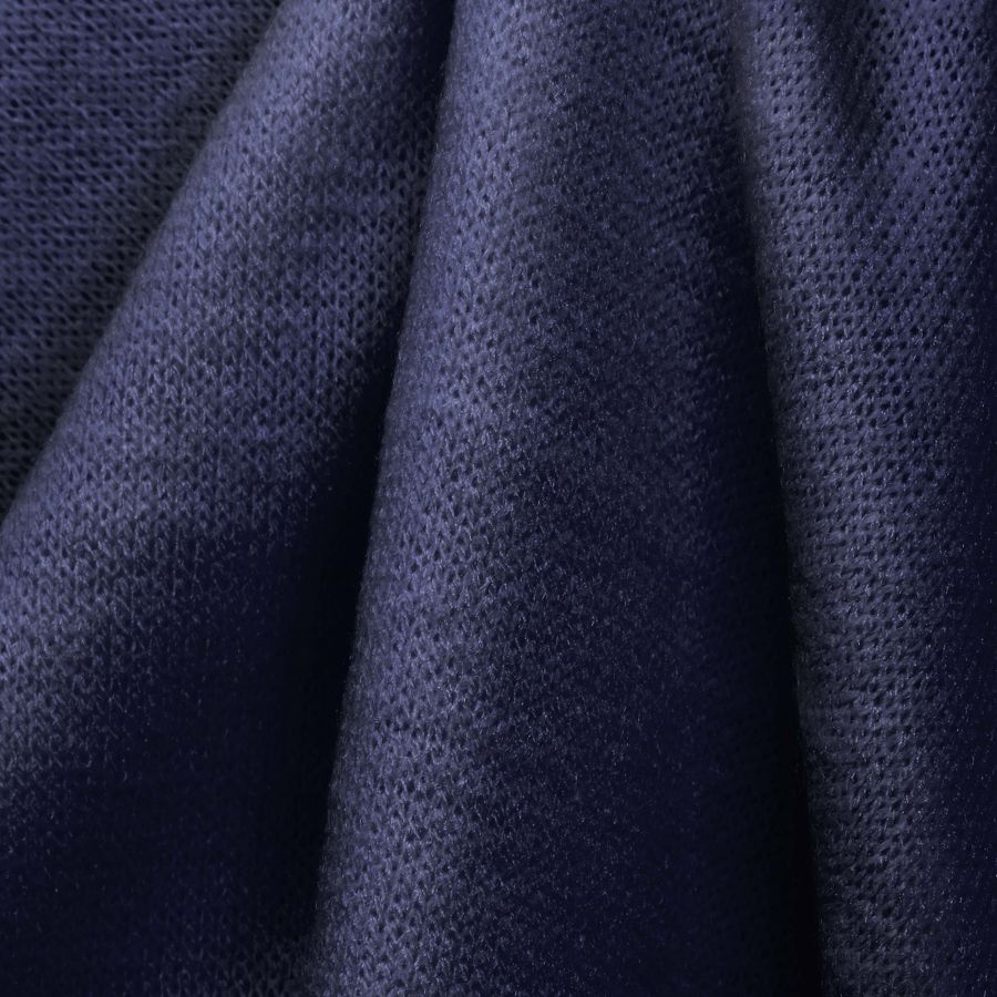 La tela base es el Punto Jersey de Tacto Algodón - Atenas, con una composición del 81% de poliéster, 15% de acrílico y 4% de elastano. El color liso impreso es Azul Nocturno, con un CMYK de 98 90 36 36. Este color representa la profundidad del océano y el cielo nocturno, aportando serenidad y elegancia a cualquier diseño. Además, combina especialmente bien con tonos tierra y grises.