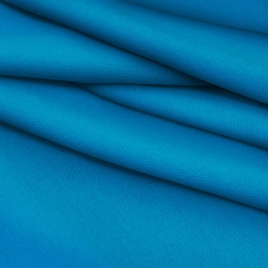 La tela base utilizada para este producto es un Punto Jersey de Tacto Algodón - Atenas, compuesta por una combinación de 81% poliéster, 15% acrílico y 4% elastano, con un gramaje de 239 gr/m2 y un ancho de 150 cm. El color liso impreso es un Azul Phthalo, con una tinta Cyan de 84 y una tinta Magenta de 42, sin presencia de tinta Yellow ni Black, lo que arroja una combinación de CMYK de 84 42 0 0.