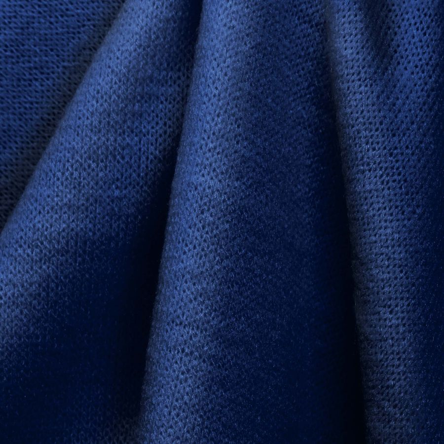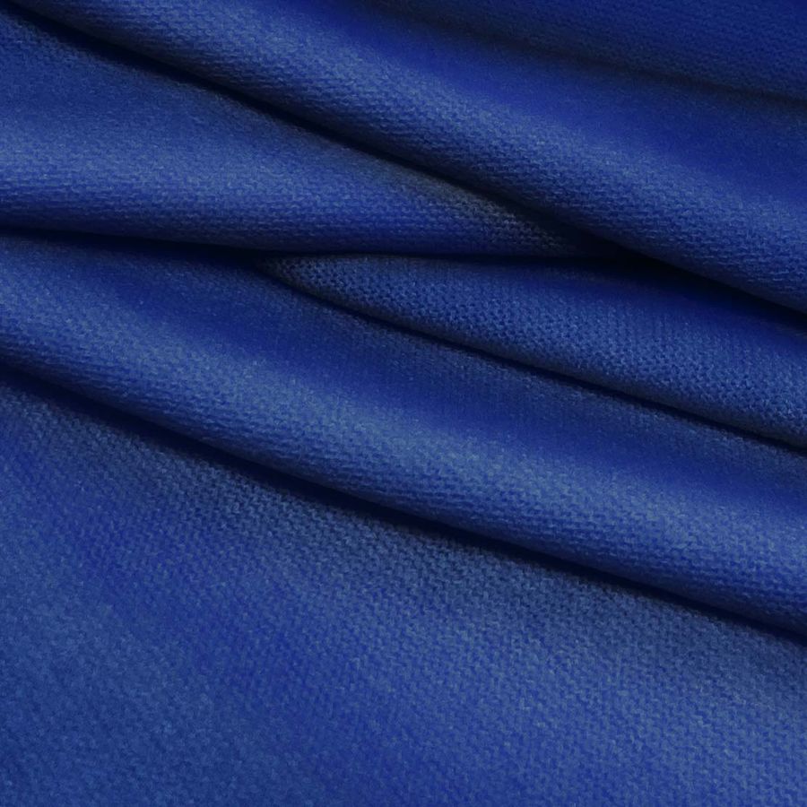 La tela base es el Punto Jersey de Tacto Algodón - Atenas, un tejido de punto compuesto por 81% poliéster, 15% acrílico y 4% elastano, con gramaje de 239 gr/m2 y ancho de tela de 150 cm. El color liso impreso es Azul Real con una mezcla de tintas CMYK de 100-89-35-23 respectivamente. Este color es un tono intenso y elegante que combina muy bien con el blanco, negro y grises.