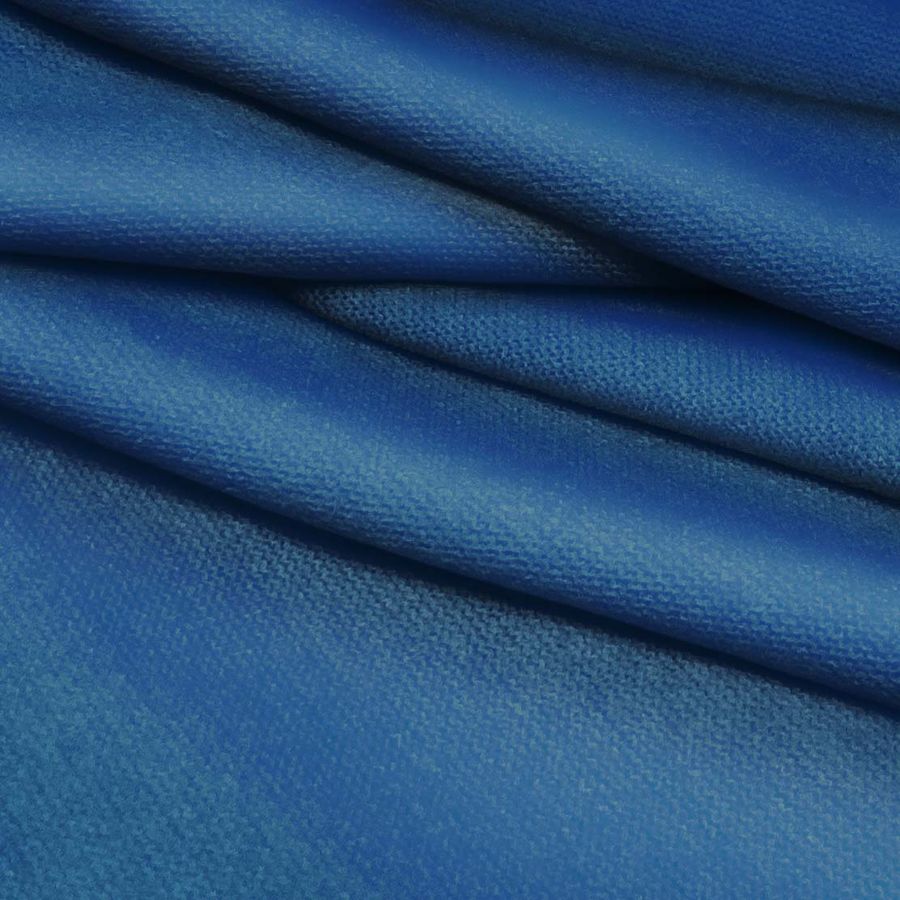 La tela base del tejido es el Punto Jersey de Tacto Algodón - Atenas. El color liso impreso es Azul seda con un contenido de CMYK de 98 71 31 17. Este color secundario genera una sensación de calidez y suavidad, lo que lo hace ideal para prendas de vestir de invierno y de otoño. El Azul seda combina perfectamente con tonos grises, azules oscuros, marrones claros y beige.