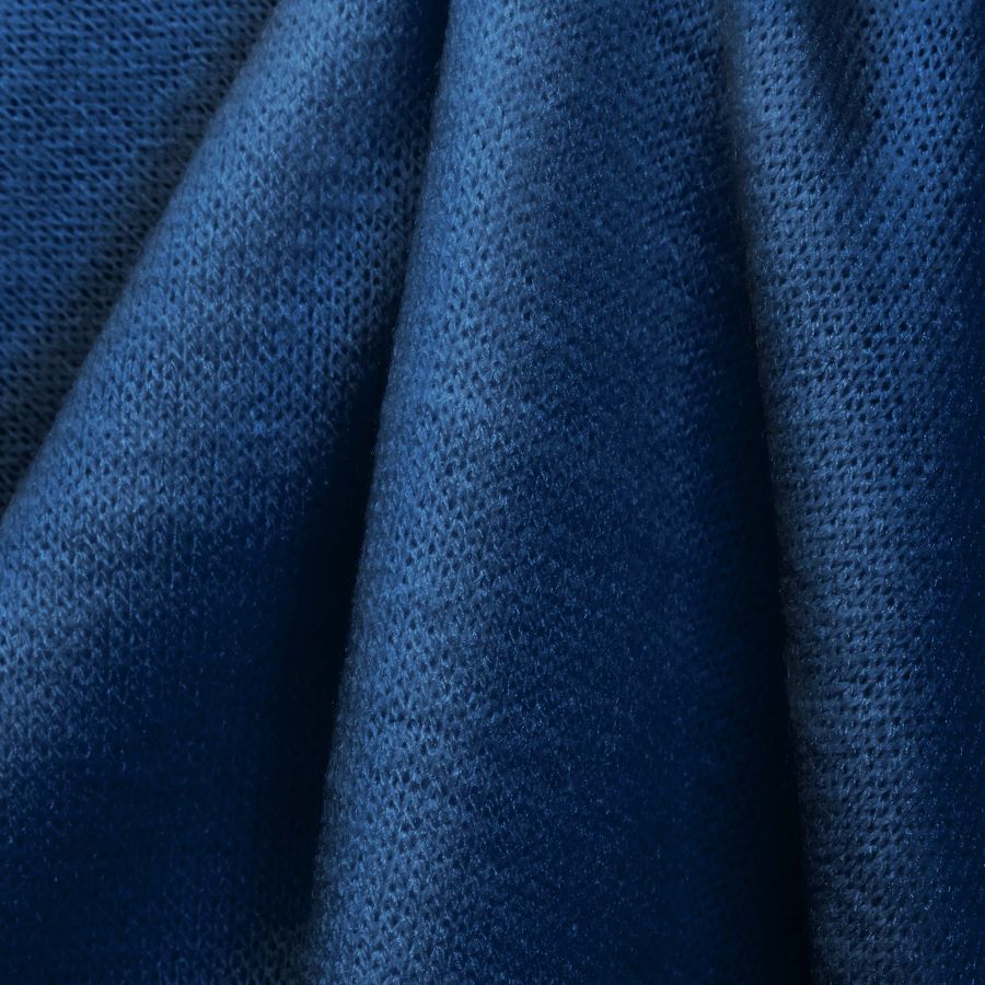 La tela base es el Punto Jersey de Tacto Algodón - Atenas, con una composición del 81% POLIÉSTER, 15% ACRÍLICO y 4% ELASTANO. El color liso impreso es Azul Oscuro, con un CMYK de 100 82 32 15. Este tono profundo y elegante combina muy bien con otros colores como el gris claro, amarillo mostaza y verde oliva. El tejido está impreso con el color liso a una sola cara por impresión digital textil.