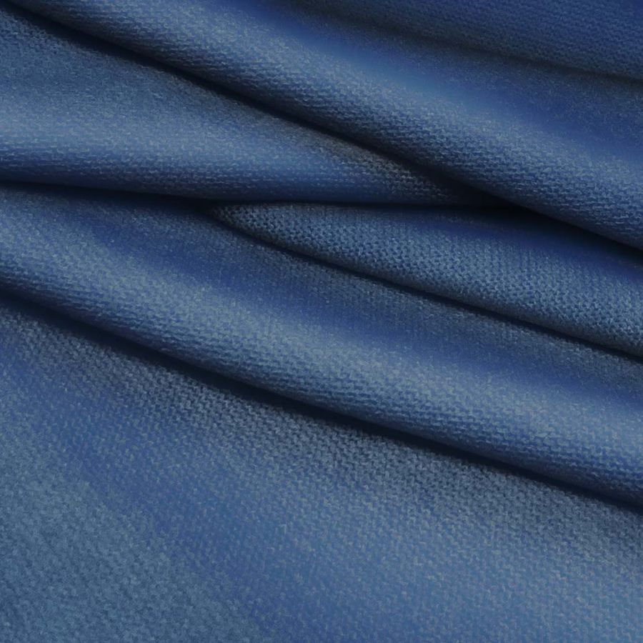 La tela base del tejido es el Punto Jersey de Tacto Algodón - Atenas, compuesto por 81% de poliéster, 15% de acrílico y 4% de elastano, con un gramaje de 239 gr/m2 y una anchura de 150 cm. El color liso impreso es una combinación de azul y zarzamora, con las siguientes proporciones de tinta: Cyan 90, Magenta 68, Yellow 37 y Black 27, representando el CMYK 90 68 37 27. Este color impreso combina bien con tonos grises, beiges y marrones debido a la presencia de los tonos magenta y cyan en su composición.