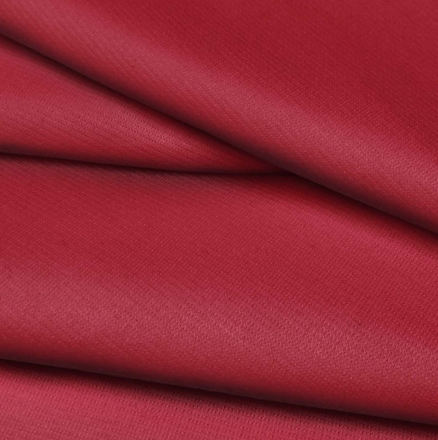 La tela base de este tejido es el Punto Roma Elástico - Lyon, una tela de punto compuesta por un 97% de poliéster y un 3% de elastano, con un gramaje de 282 gr/m2 y un ancho de 150 cm. El color liso impreso es un vibrante rojo escarlata, con una tinta cyan de 24, magenta de 98, yellow de 73 y black de 20, lo que indica que el color es principalmente una mezcla de magenta y amarillo.
