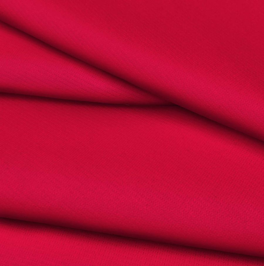 La tela base es el Punto Roma Elástico - Lyon, una tela de punto compuesta por un 97% de poliéster y un 3% de elastano, con un gramaje de 282 gr/m2 y un ancho de 150 cm. Esta tela es de color liso impreso en un tono rojo locura, con una tinta cyan de 0, una tinta magenta de 98, una tinta amarilla de 72, y una tinta negra de 0, lo que da un valor CMYK de 0 98 72 0.