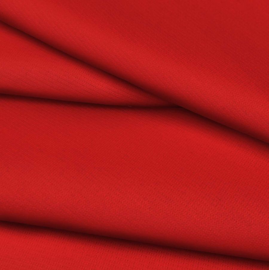La tela base de este tejido es el Punto Roma Elástico - Lyon, una tela de punto compuesta por un 97% de poliéster y un 3% de elastano, con un gramaje de 282 gr/m2 y un ancho de 150 cm. El color liso impreso es el Rojo Lujuria, con un CMYK de 8 97 94 1, lo que significa que su componente principal es el magenta. Este color simboliza la pasión y la energía, y combina muy bien con tonos neutros como el negro o el blanco. La tela está impresa con este color a una sola cara por impresión digital textil.