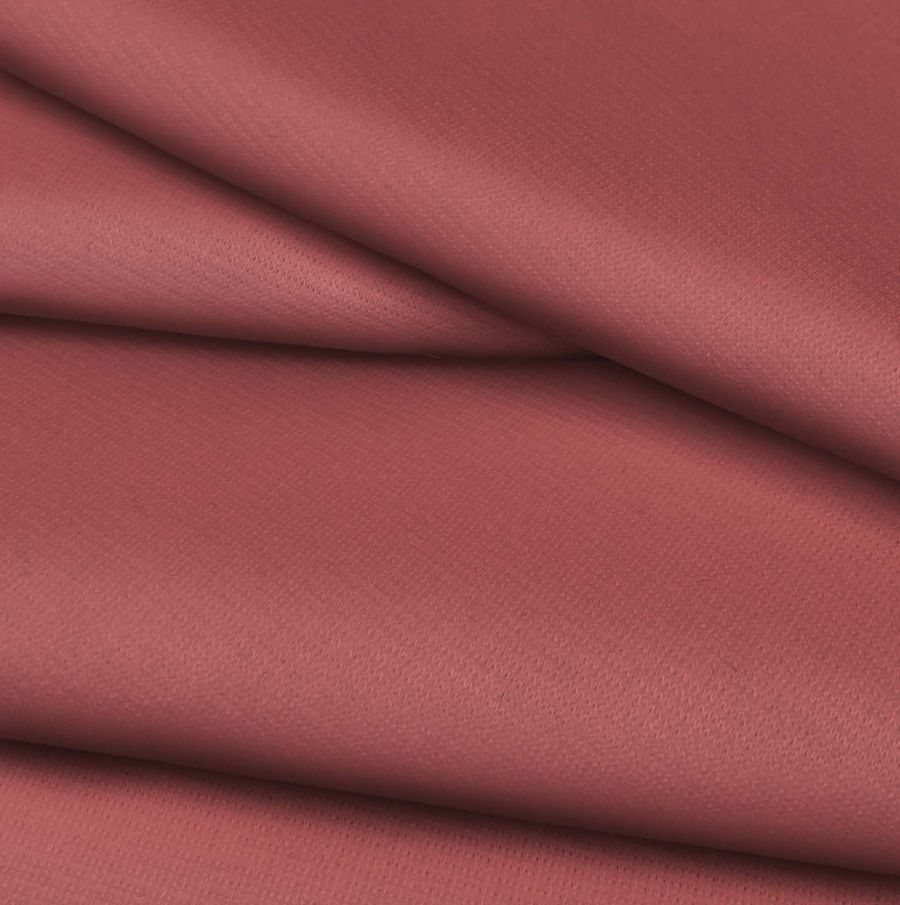 La tela base es Punto Roma Elástico - Lyon, compuesta por 97% poliéster y 3% elastano, con un peso de 282 gr/m2 y una anchura de 150 cm. El color liso impreso es Rojo Piel Roja, con un CMYK de 24 73 56 16. El color secundario es un rojo intenso con tonalidades de marrón, lo que lo convierte en un color cálido y acogedor. El color secundario combina muy bien con tonos como el beige, el marrón y el dorado.