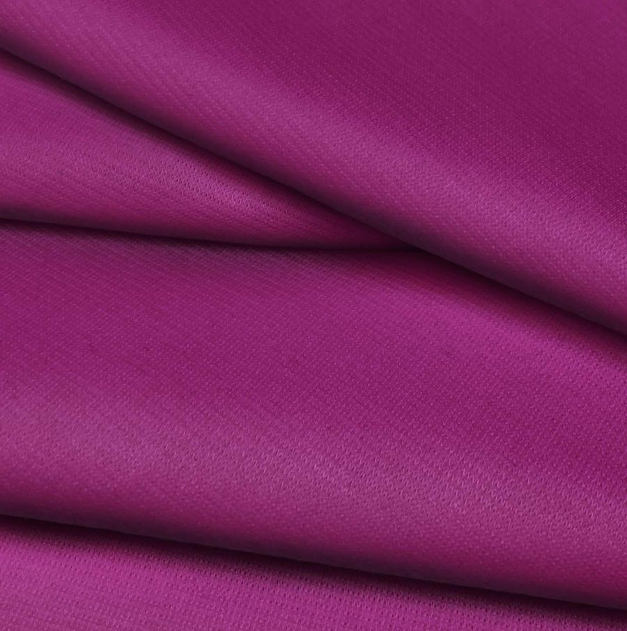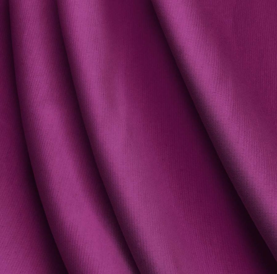 La tela base es el Punto Roma Elástico - Lyon, una tela de punto compuesta por un 97% de poliéster y un 3% de elastano, con un gramaje de 282 gr/m2 y una anchura de 150 cm. El color liso impreso en esta tela es Rojo Púrpura, con un CMYK de 50 100 18 9, lo que se traduce en un tono intenso y vibrante con ligeros toques de púrpura que le aportan profundidad. Este color combina especialmente bien con tonos dorados, marrones oscuros, grises claros y blancos.