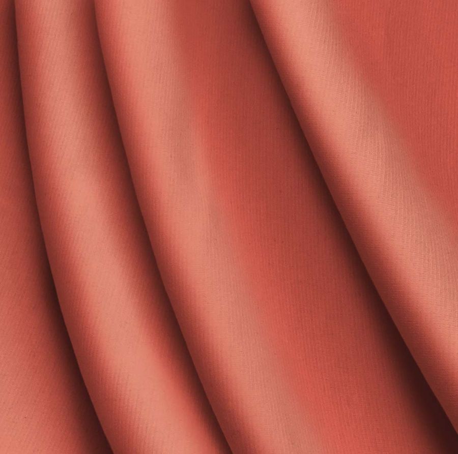 La tela base es la Punto Roma Elástico - Lyon, una tela de punto compuesta por 97% de poliéster y 3% de elastano, con un gramaje de 282 gr/m2 y un ancho de 150 cm. El color liso impreso es Rojo Coral, con un CMYK de 3-75-66-0. Este color es un tono intermedio entre el rojo y el naranja, que evoca la vitalidad y la energía. Combina bien con tonos neutros y tierra, así como con tonos más vibrantes como el fucsia o el morado.