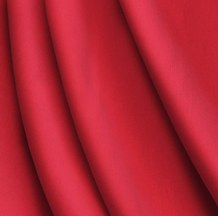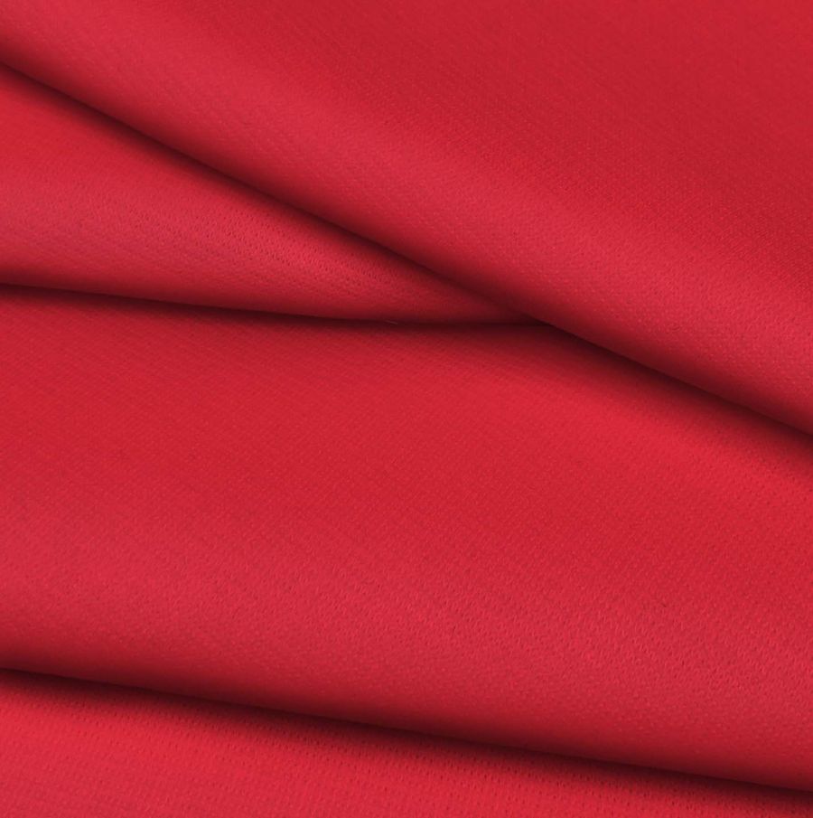La tela base de la prenda es Punto Roma Elástico - Lyon, compuesta de 97% poliéster y 3% elastano, con un gramaje de 282 gr/m2 y un ancho de 150 cm. El color liso impreso es Rojo Rubor, con los siguientes valores de tinta: cyan 0, magenta 93, yellow 74 y black 0, resultando un CMYK de 0 93 74 0. Una tonalidad suave y delicada que inspira pasión y romanticismo, combinando bien con colores pastel, neutros y tierra. El tejido está impreso con color liso a una sola cara por impresión digital textil.