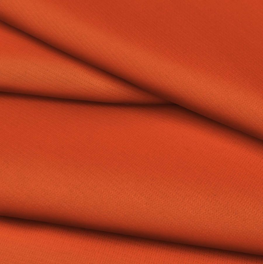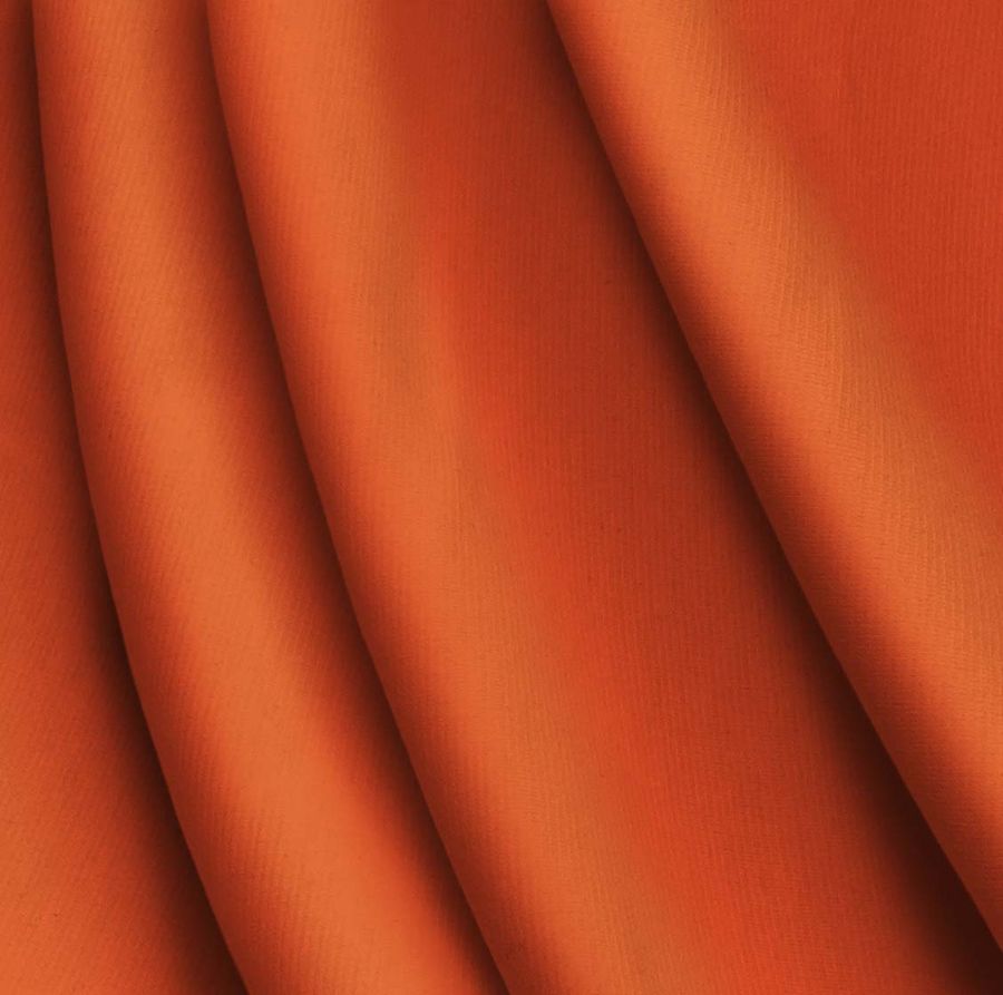 La tela base es el Punto Roma Elástico - Lyon, una tela de punto con composición de 97% poliéster y 3% elastano. El color liso impreso es un rojo anaranjado intenso, que se logra con cero tinta cyan, 82 de magenta, 89 de yellow y cero de tinta black, como se refleja en el CMYK del color. Este color encarna la pasión, la energía y la vitalidad, y se combina muy bien con tonos más neutros como el gris y el negro para crear un equilibrio visual.