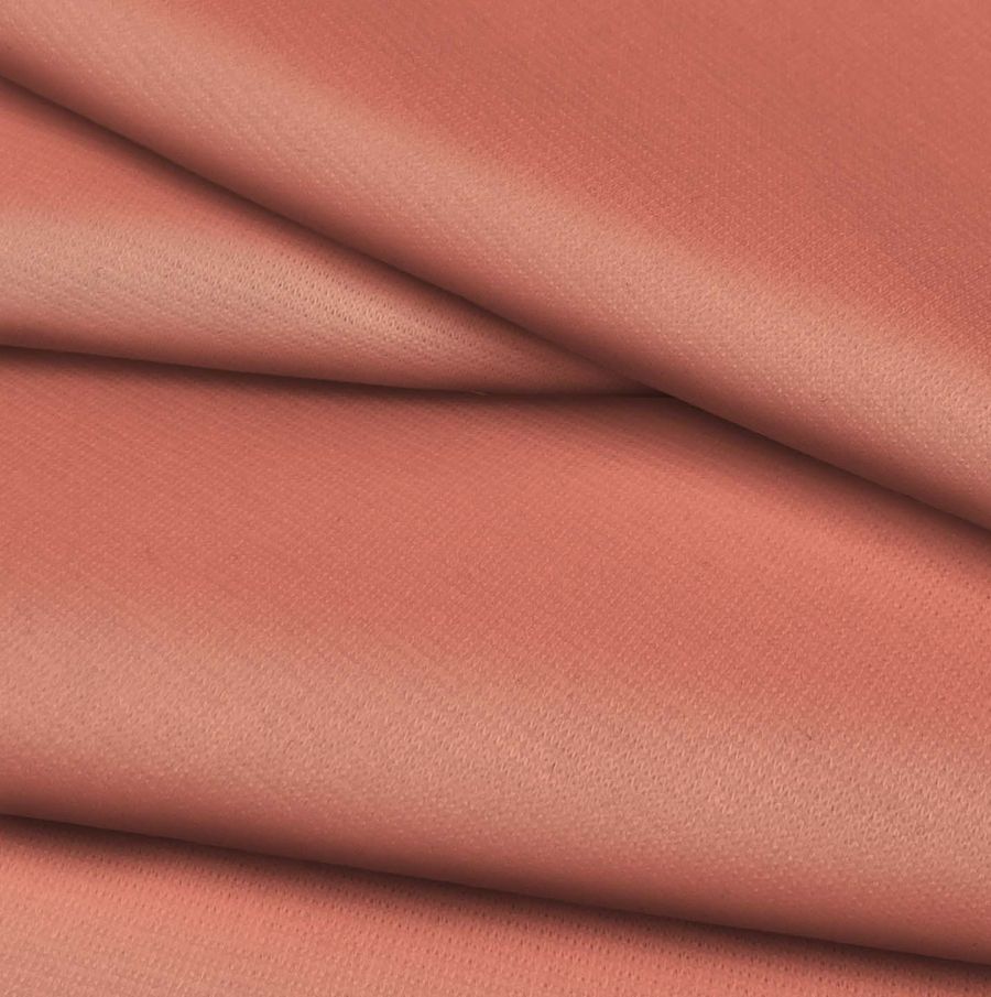 La tela base es el Punto Roma Elástico - Lyon, una tela de punto compuesta por 97% poliéster y 3% elastano, con un gramaje de 282 gr/m2 y un ancho de 150 cm. Su color liso impreso es un rojo pastel, representado por un CMYK de 3 63 55 0. Este color secundario es suave y aporta calidez y dulzura a la prenda. Combina bien con tonos neutros como el blanco, el negro y el gris, así como con tonos pastel como el rosa y el celeste. La tela está impresa con el color liso a una sola cara por impresión digital textil, lo que permite una alta definición y una amplia gama de colores.